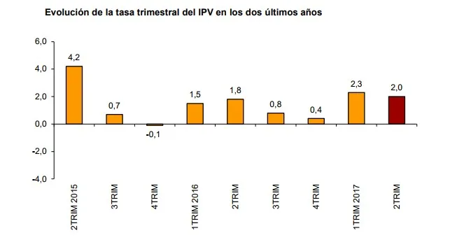 La variación trimestral del IPV general en el segundo trimestre de 2017 es del 2,0%.