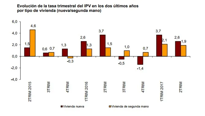 Por tipo de vivienda, los precios de la vivienda nueva suben un 2,6% entre el primer y segundo trimestre de 2017.