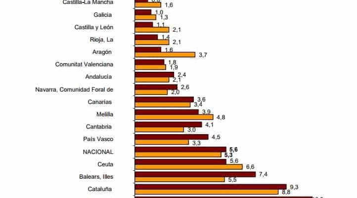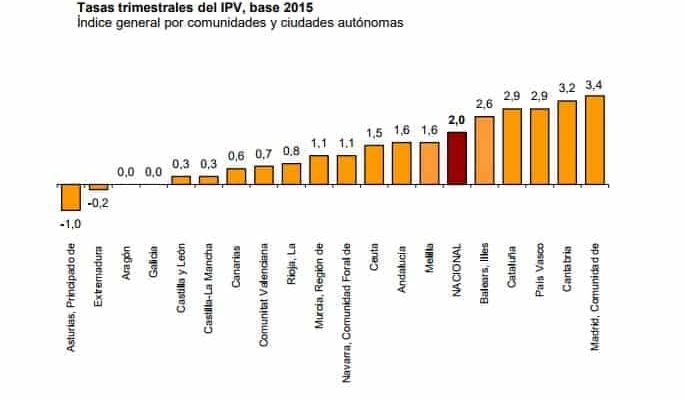 Comunidad de Madrid, Cantabria, País Vasco y Cataluña registran los mayores aumentos (del 3,4%, 3,2%, 2,9% y 2,9%, respectivamente).