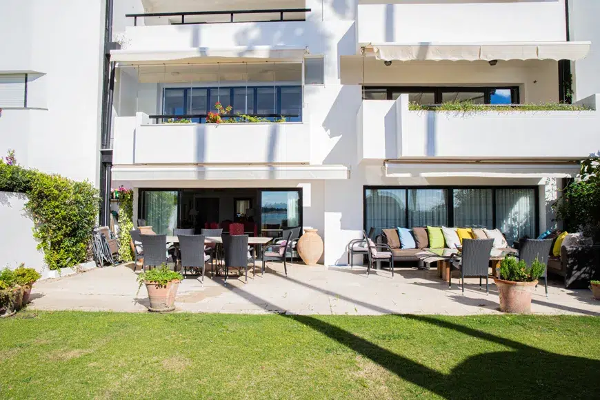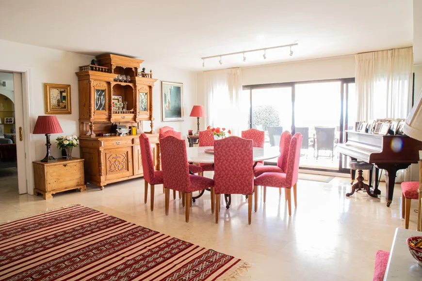 Propiedad ya Vendida. No esta disponible. Piso de 4 dormitorios de planta baja ubicado en la zona de más demanda cerca del Club de Playa Octogono. Tecnicamente son cinco dormitorios pero el propietario usa uno como oficina. La vivienda consta de dos viviendas combinadas de cinco dormitorios y cuatro baños. El salon y comedor dan a la terraza grande y jardin con aceso privado a la playa. Un espacio abierto, llena de magia y luz. Este gran piso cuenta con 5 dormitorios, uno sirve como despacho, y 4 cuartos de baño. Hay otro cuarto de baño en el almacen en la zona del parking. La casa consta de un hall de entrada, cocina totalmente equipada con lavadero, luminoso y amplio comedor, salón independiente, (ambos con acceso a la terraza cubierta y al jardín con increíbles vistas). Los dormitorios tienen armarios empotrados y el dormitorio principal con un vestidor. Incluye 2 plazas de parking y un trastero en el semisótano, servicio 24 horas de seguridad, aire acondicionado y calefacción central. Se incluyen en la venta dos plazas de garaje y un bufete/almacén en el sótano con baño en suite. Construido: 254,11m² Terrazas: 57,58m² Jardín: 100,56m² Ademas hay un trastero con una ventana y un cuarto de baño con ducha. que se puede usar como dormitorio pero esta en en semi sotono al lado las plazas de parking. Precio 1.590.000 €